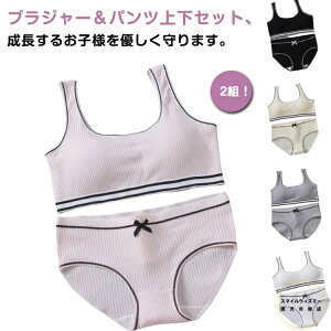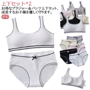 上下セット*2!お得なブラジャー&パンツ上下セット、成長するお子様を優しく守ります。パット付き、女の子の身体に合わせた学生向けの下着上下セット柔らかく通気性抜群の素材を採用して汗をかいても吸収して乾きやすい...