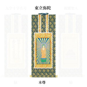 浄土真宗の掛け軸です。 写真は左から、「九字十字名号」「東立弥陀」「親鸞聖人」となっています。 真宗 高田派では、本尊に立弥陀を飾り、向かって右側には親鸞聖人を飾り、向かって左側に九字十字名号(=南無不可