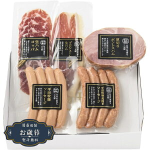 賞味期間:冷蔵35日 内容:ロースハム、ボンレスハム各50g、生ハム55g、モルタデラ、ランチョンミート各60g、粗挽きウインナー100g (カタログ番号:1276)