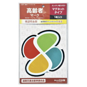 [特長]:■高齢者ドライバーの安全運転に。■車外用マグネットタイプ。■道路交通法基準適合品。■後続車のヘッドライトで光る反射タイプ。[材質]:■マグネットシート[サイズ]:■パッケージサイズ:高さ255×幅155×奥行3mm