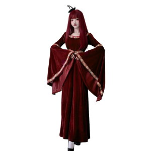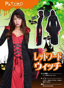【商品説明】 幅の広いベルスリーブ袖が印象的なフード付き魔女コスチューム。V字に開いた胸元と、赤×黒のツートンカラーが怪しくもセクシーな雰囲気を演出。紐の長さを調整すれば体のラインがスッキリと見えます。頭からすぽっとかぶ