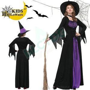 魔女 ドレス 大人女性用 ハロウィン オズの魔法使い風 コスプレ 死神 ウィッチ 悪魔 ロングドレス コスチューム 衣装 仮装 仮装用 ハロウィーン 悪役 舞台 ステージ コス パーティー お遊戯会 子供ドレス...