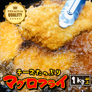 チーズ入り(マグロカツ) 内容量 およそ1kg(8枚・1枚あたり約150g)。保存方法 -18℃以下で冷凍保存。水揚げ地 静岡・焼津(加工地:八王子)。