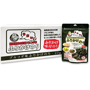 ガツンとくる韓国焼き肉の味 新登場 内容量:20g(1袋当たり) 原材料:乾しのり(韓国産)、コーン油、ごま油、いりごま、砂糖、食塩、プルコギシーズニング (粉末醤油、砂糖、その他)/調味料(アミノ酸等)、甘味料(ステビア)、香料