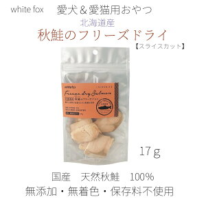 新鮮な北海道産秋鮭をそのままフリーズドライ。おやつやトッピング、手作りごはんの具材として。商品名ホワイトフォックス 北海道産 秋鮭のフリーズドライ スライスカットブランドホワイトフォックス原材料秋鮭賞味期限製造より18か月