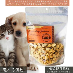 商品の特徴【北海道産秋鮭】栄養価の高い秋鮭をそのままフリーズドライに仕上げました。フードのトッピングや手作りごはんの具として幅広くお使い頂けます。ダイスカットはごほうびやしつけに与えやすいひとくちサイズです。●高タン