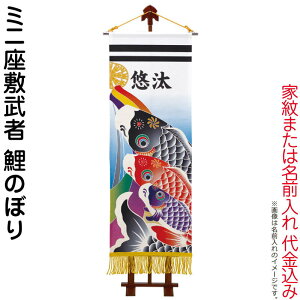×1.2m幟(ポリエステルちりめん) 木製ムク台座(高さ1.54m)節句人形優良店ミニ座敷武者 鯉のぼり スタンド付 家紋または名入れ代込み商品番号:wtk-ko-12roo