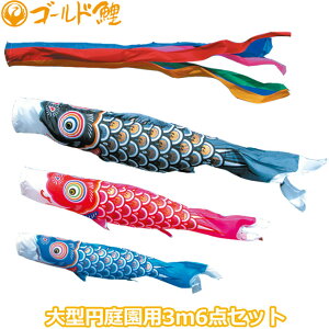 商品説明 セット内容 ・黒鯉3m ・赤鯉2m ・青鯉1.5m ・吹流し3m ・矢車50cm ・ロープ14m ・ポール6m 仕 様 ・矢車…矢羽根直径50cm ・ロープ…14m ・杭…83cm ・ポール全長6m 8本継 先端外径2.7c...