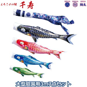 商品説明 セット内容 ・黒鯉3m ・赤鯉2m ・青鯉1.5m ・緑鯉1.2m ・千寿吹流し3m ・矢車…ロイヤル1 ・ロープ…15m 材 質 ・撥水加工 ・ポリエステル立体交差織 ・家紋/花個紋/名前入れ対応 送 料 -**-送料無料...