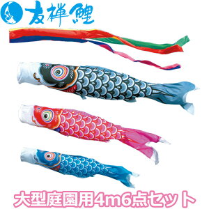 ■セット内容 4.0m / 8点セット ・黒鯉4m ・赤鯉3m ・青鯉2m ・緑鯉1.5m ・紫鯉1.2m ・吹流し4m ・矢車50cm ・ロープ15m ・ポール6.8m ■仕様 ・矢