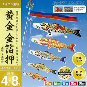 メーカー希望小売価格はメーカーカタログに基づいて掲載しています商品名鯉のぼり こいのぼり 庭用 セット各種(五色吹流し・矢車・ロープ付き ※ポール別売) 村上鯉のぼり 鯉のぼり 「黄金 金箔押4m8点...