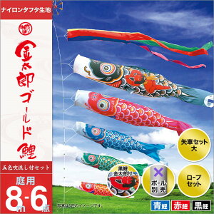 商品説明 セット内容 ・金太郎付き黒鯉3m ・赤鯉2m ・青鯉1.5m ・吹流し3m ・矢車50cm ・ロープ14m ・ポール6m 仕 様 ・矢車…矢羽根直径50cm ・ロープ…14m ・杭…83cm ・ポール全長6m 8本継 先端外...