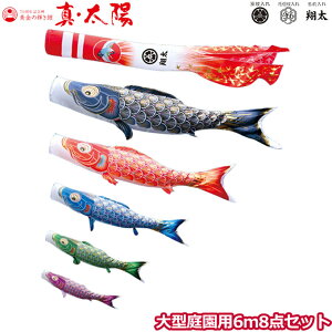商品説明 セット内容 ・黒鯉3m ・赤鯉2m ・青鯉1.5m ・緑鯉1.2m ・吹流し3m ・矢車50cm ・ロープ14m ・ポール6m 仕様 ・矢車…矢羽根直径50cm ・ロープ…14m ・ポール全長6m 8本継 先端外径2.7cm...