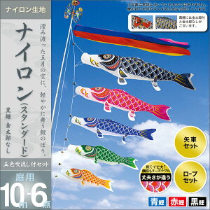 ■セット内容 4.0m / 6点セット ・黒鯉4m ・赤鯉3m ・青鯉2m ・吹流し4m ・矢車50cm ・ロープ15m ・ポール6.8m ■仕様 ・矢車…矢羽根直径50cm ・ロープ…15