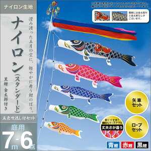 商品説明 セット内容 ・黒鯉6m ・赤鯉5m ・青鯉4m ・緑鯉3m ・尚武之丸吹流し6m ・矢車…ロイヤル3 ・ロープ…30m 材 質 ・撥水加工 ・ポリエステルメシルキーブライト生地仕様 ・家紋/花個紋/名前入れ対応 送 料 -*...