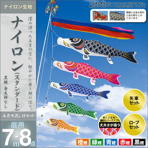 商品説明 セット内容 ・金太郎付き黒鯉4m ・赤鯉3m ・青鯉2m ・緑鯉1.5m ・吹流し4m ・矢車50cm ・ロープ15m ・ポール6.8m 仕 様 ・矢車…矢羽根直径50cm ・ロープ…15m ・杭…78cm ・ポール全長6....