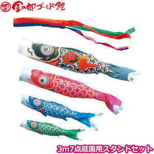 ■セット内容 3.0m / 7点セット ・黒鯉3m ・赤鯉2m ・青鯉1.5m ・緑鯉1.2m ・吹流し3m ・矢車50cm ・ロープ14m ・ポール6m ■仕様 ・矢車…矢羽根直径50cm