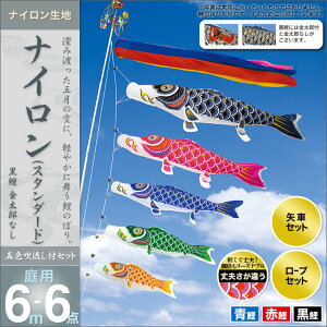 ■セット内容 4.0m / 6点セット ・黒鯉4m ・赤鯉3m ・青鯉2m ・吹流し4m ・矢車50cm ・ロープ15m ・ポール6.8m ■仕様 ・矢車…矢羽根直径50cm ・ロープ…15