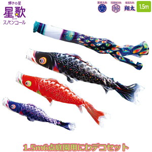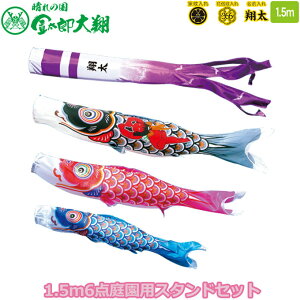 ■セット内容 1.5m / 6点セット ・黒鯉1.5m ・赤鯉1.2m ・青鯉1m ・吹流し1.5m ・矢車33cm ・ロープ10m ・ポール4.1m ■仕様 ・矢車…矢羽根直径33cm ・