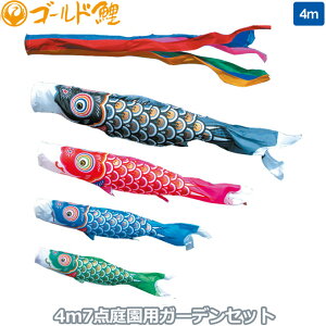 ■セット内容 4.0m / 7点セット ・黒鯉4m ・赤鯉3m ・青鯉2m ・緑鯉1.5m ・吹流し4m ・矢車50cm ・ロープ15m ・ポール6.8m ■仕様 ・矢車…矢羽根直径50c