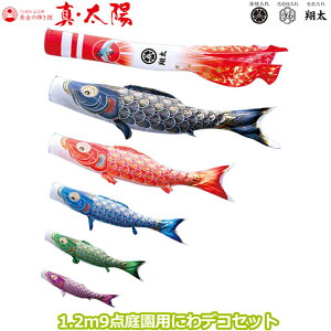 商品説明 セット内容 ・金太郎付き黒鯉3m ・赤鯉2m ・青鯉1.5m ・緑鯉1m ・吹流し3m ・矢車50cm ・ロープ14m ・ポール6m 仕様 ・矢車…矢羽根直径50cm ・ロープ…14m ・ポール全長6m 8本継 先端外径2....