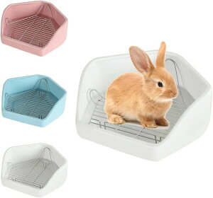 Nicffdi うさぎ トイレ 陶器 カワイ 飼育ケージ内装 三角 兎 トイレ かわいい 2色 ウサギ トイレ 固定 チンチラ用陶器トワレ 噛み防止 金網スノコ付き 飼育ケージ内装 清潔 小動物 トイレ トレーニングに最適...