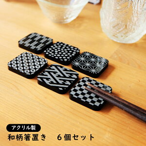 和柄が彫刻されたアクリル製箸置き。 異なった和柄のデザインが6種類セットでお届けします。 レーザー加工で一つ一つ彫刻しました。 ≪セット内容≫ ・矢絣(やがすり) ・水玉 ・麻の葉 ・鹿の子絞り(かのこしぼり)...