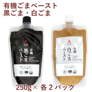 有機のごまを特別な臼で丁寧に練り上げたごまペースト。黒ごま特有の濃厚な風味と甘み、白ごま特有のコクと甘味が特徴です。胡麻豆腐、ごまだれ、ドレッシング、中華料理の食材として、また、同量のハチミツや砂糖と一緒トーストにぬ