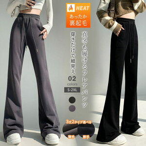 【低身長さん〜高身長さんまで】フレアパンツ 裏起毛 選べる3丈 レディース あったか フレアパンツ レギンスパンツ 細見え 防寒