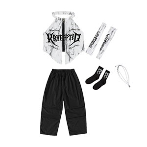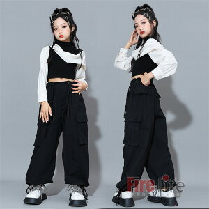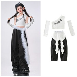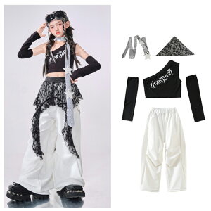 女の子のヒップホップパフォーマンスにぴったりな衣装が登場!白と黒のTシャツはカッコよさと可愛さ両立,ステージで1番目を奪う存在感!ダンス大会や発表会に,この1着で輝かせよう!