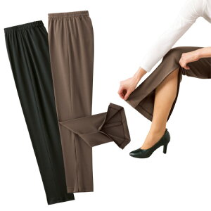 日本製 らくらく快適膝だしパンツ(同サイズ2色組) 選べる股下丈 長ズボン レディース 婦人服 ミセス シニア 女性 裾ファスナー ブラック モカブラウン 黒 茶色 敬老の日 ギフト プレゼント シニアファッション...