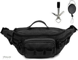 ショルダーバッグ タックルバッグ 2WAY ピンオンリール ラインカッター 付き 登山 サバゲー 多機能 バッグ 黒 迷彩 ブラックブランドThujops...