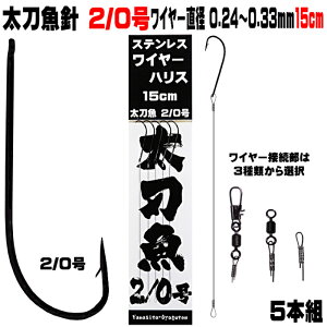山下漁具店 釣り侍のデコ針シリーズ 太刀魚 針 2/0号 黒針 極細ステンレス ワイヤー 長さ15cm ワイヤーハリス選びの3か所の確認 1. 針の種類サイズ 太刀魚針 1/0号・2/0号・3/0号から選択...