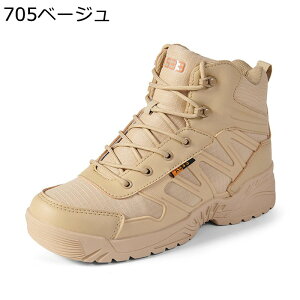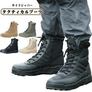 サイドジッパータクティカルブーツ合皮とナイロン生地なので質感も良く、耐久性、通気性に優れています。サイドジッパー付きでブーツの着脱もスムーズにできます。足の踏み込み時の衝撃を吸収するインソール付きで、過酷な状況でも疲