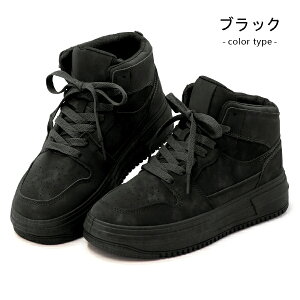 ハイカット 厚底 マット スエード カジュアル ウォーキングシューズ 靴 厚底スニーカー おしゃれ かわいい 軽量 ブラック 紐靴 商品特徴 シンプルでスタイリッシュなスエード調の厚底スニーカー。 ア