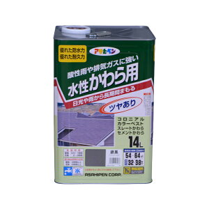 酸性雨や排気ガスに強い 2回塗り ツヤあり 水性アクリルエマルション樹脂塗料 特長 ●優れた防水力・耐久力で長期間・日光や雨からかわらを守ります。 ●酸性雨や排気ガスに対して優れた保護効果 を発揮します。 ●伸びがよく、ハケさば