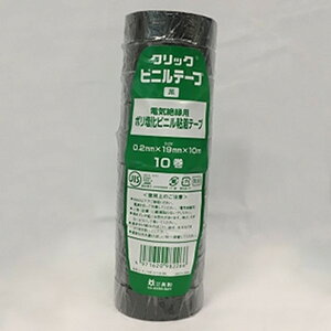 型番:クリックVT19×10クロ_10set●商品名:【お買い得 10巻セット】 ポリ塩化ビニル粘着テープ●クリック●色:黒●電気絶縁用●サイズ:19mm×10m●厚(mm):0.2