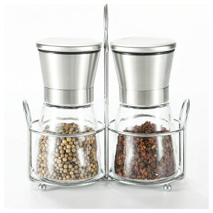 【商品コード】:y813294【カラー】シルバー素材:ガラス、ステンレスセット内容:本体【2本】+ラック容量:約160mlサイズ:6.8cm×13.5cm原産国 : 中国【この商品について】【粗さを調整可能】さまざまの食材に応じて調味...