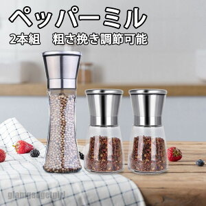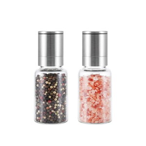 岩塩 スパイスミル 透明 耐熱ガラス ステンレス製 セラミックミル 粗さ挽き調節 調味料 結晶塩 塩コショウ 黒胡椒 グラインダー 操作簡単 調理用品 調味料入れ 2個セット 【商品仕様】サイズ:約外径55x高...