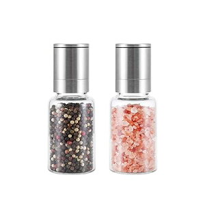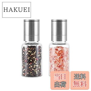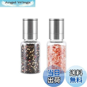 岩塩 スパイスミル 透明 耐熱ガラス ステンレス製 セラミックミル 粗さ挽き調節 調味料 結晶塩 塩コショウ 黒胡椒 グラインダー 操作簡単 調理用品 調味料入れ 2個セットブランド色銀色モデルmedium...