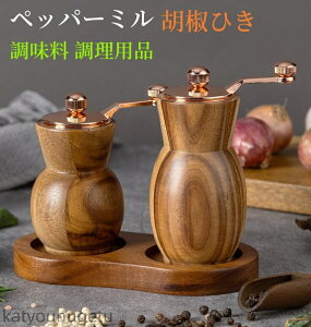 ペッパーミル 手動 木製 ソルトミル スパイスミル ハンドル付き