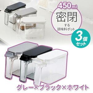 湿気に強いシリコーンパッキン付きオシャレなモノトーンで、湿気に強いシリコーンパッキン付きの調味料ポットの3個セット。一人暮らしに心強い、450mlでスリムな小容量の調味料入れです。密閉できるシリコーンパッキンとロック機能の付
