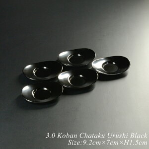 Product information ■3寸小判茶托 黒 漆塗り 5枚組 ■本体価格:9,600円(税別) ■単品サイズ:9.2cm×7cm×H1.5cm/重さ:27g ■材質:木粉入り合成樹脂 ■塗装:中塗りウレタン塗装...