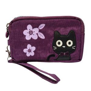 ?両面黒猫柄のポーチ ?メイクポーチ、旅行用ポーチ、出張用ポーチ、文房具ポーチと使用用途多数 ?底はマチがあってスプレー等も入れる事が可、何も入れていない時はペタンコにできるのでかさばること無し ?バ...
