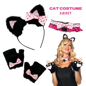 キティモチーフのカチューシャ・グローブ・チョーカー3点セット。メール便送料無料。 ※ワンピースは非売品です。 ブランド アメリカ製 カラー ブラック×ピンク サイズ ワンサイズ