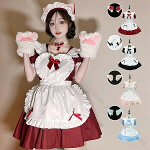 メイド服 コスプレ 猫 ネコ耳 かわいい フリル セクシー 赤 ブラック ゆめかわ 大人 レディース バレンタイン エプロン スカート カチューシャ 白 黒 半袖 ワンピース 仮装 リボン ピンク 大きいサイズ...