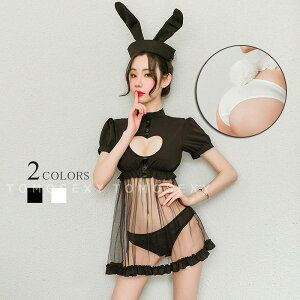 即日出荷(商品名は衣類)中身がわからない梱包でお届け シースルーのミニ丈バニーコスプレ 胸元はセクシーハートデザインが 目を惹く!! パンツに大きいなしっぼ付きで小悪魔風 セット内容: カチューシャ ワンピース パンツ ■Mサイズ