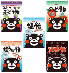 お菓子 詰め合わせ】 オークラ製菓 くまモンの飴5袋セット。黒糖飴・塩飴・のど飴・塩うめ飴・ふたつぶどう飴。各95g。黒糖飴・塩飴・のど飴・塩うめ飴・ふたつぶどう飴。各95g。熊本県の人気キャラクター「くまモン」がデザ