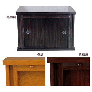 唐木仏壇台 大地(小)スライド棚付 上置仏壇、ミニ仏壇を乗せる台です。「小」サイズは20号以下の上置型の仏壇を載せるのに 適したサイズです。仏壇の大きさに合わせて作られていますので、 巾や奥行のサイズが合わせやすく重さの有る