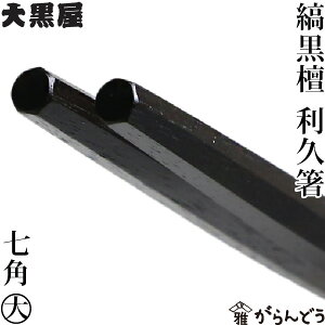 大黒屋で定番の縞黒檀七角削りのお箸です。 図形を描くことも難しい七角形は、お箸にするのも大変な形。1角の角度が51.4285‥‥と割り切れず、より繊細な削り出し作業が必要とされます。箸は親指、人差し指...